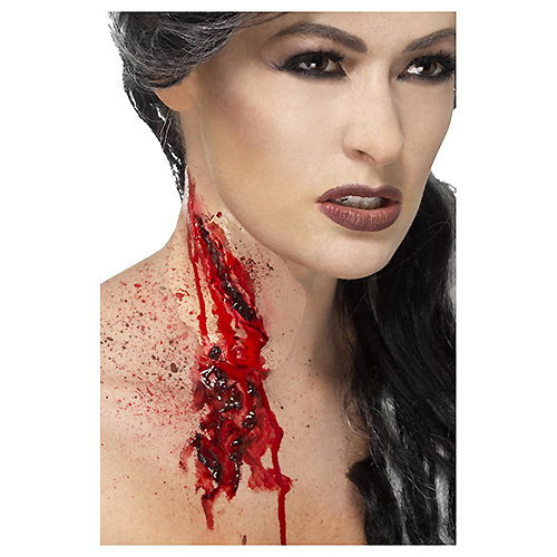 Inkluderar lim och blod. För att uppnå denna hemska look har vi använt Liquid Latex för att blanda ut kanterna på ärret mot huden och droppade med Smiffys FX Fake Blood. Observera att dessa varor säljs separat.